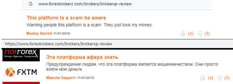- По мнению пользователя сети контора BrokerXP занимается мошенничеством