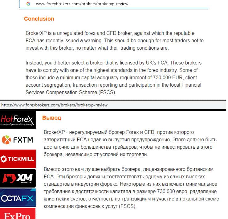 - Клиент BrokerXP настоятельно рекомендует не связываться с этой кухней