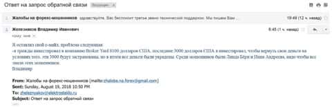 - в итоге связь с шарлатанами-представителями Брокер Ярд пропала. А из того что клиентка получила, так это ответ от еще одной аферистки-сотрудницы данной конторы Лины Томпсон, которая поведала о том, что депо в размере 250 тысяч рублей было утрачено из-за убыточных сделок.