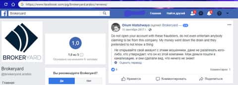Очередной отрицательный отзыв о лохотроне Брокер Ярд от англоязычного трейдера