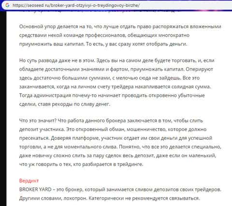 Негативная статья о лохотроне BrokerYard с сайта сеосеед ру