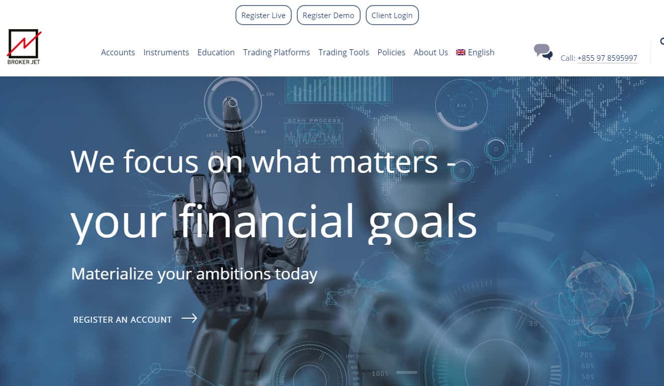 Сайт у лохотрона Брокер Джет начинается довольно стандартно и типично, а именно с банальной шапки сайта, в которой у жулья Brokerjet имеется довольно средняя лапша на уши наивной клиентуре, под предлогом которой шулера Брокер Джет будут пытаться развести наивных пользователей на деньги. Ниже вы можете увидеть начало сайта жулья.