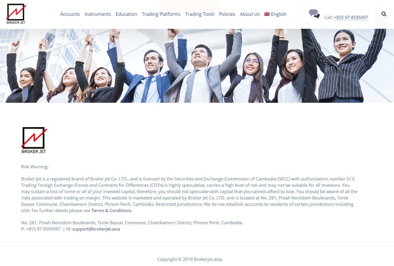 Дополнительным преимуществом аферистов Брокер Джет является оффшор, а именно: No. 281, Preah Norodom Boulevards, Tonle Bassac Commune, Chamkamorn District, Phnom Penh, Cambodia, что дает шулерам Brokerjet дополнительную анонимность счетов и владельцев, да и суды с жульем Брокер Джет будут происходить на территории оффшора.