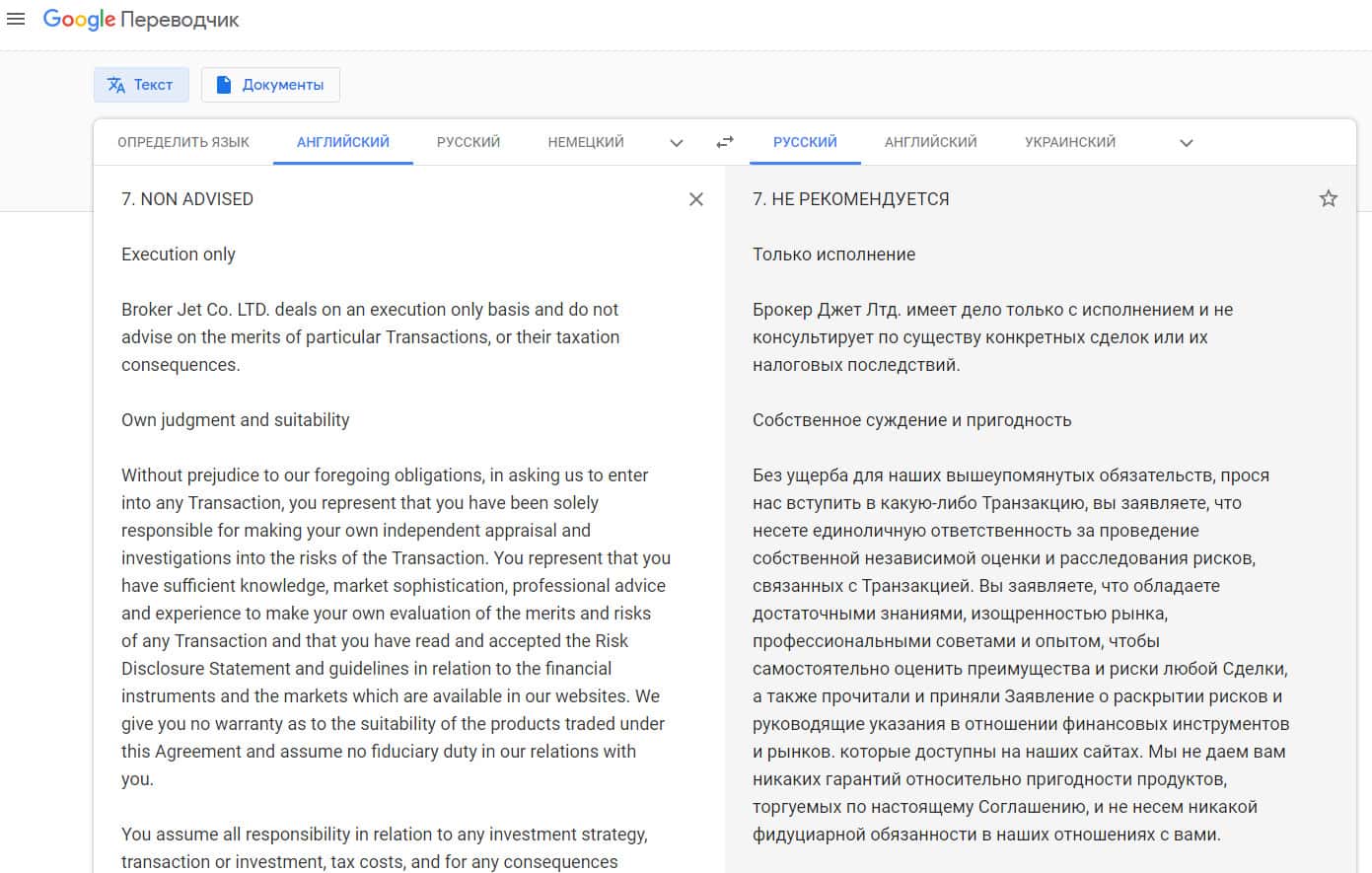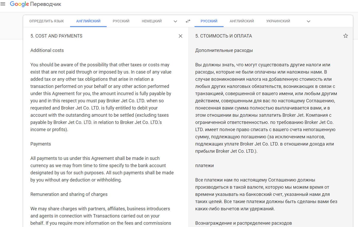 Завершается клиентское соглашение у шулеров Брокер Джет крайне малоинформативно, так как аферисты Brokerjet просто не смогли придумать ничего адекватного или внятного, поэтому они попросту и в конце своего клиентского соглашения расположили воду. На изображении ниже вы можете увидеть окончание условий лохотрона Брокер Джет.