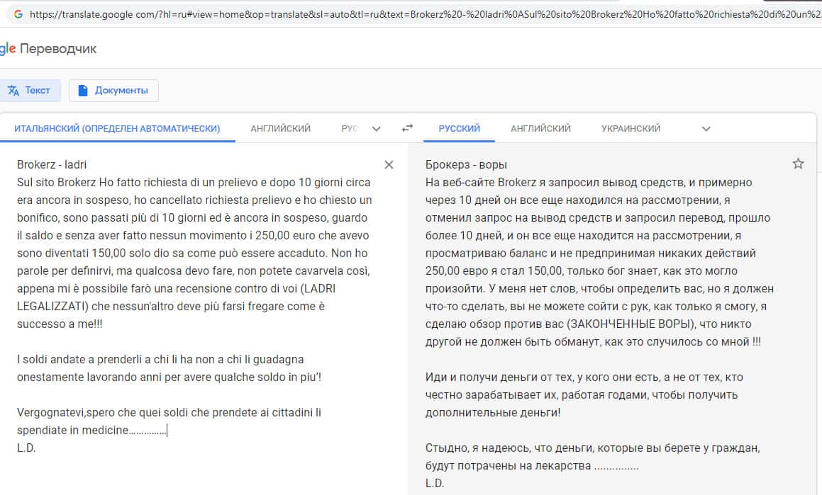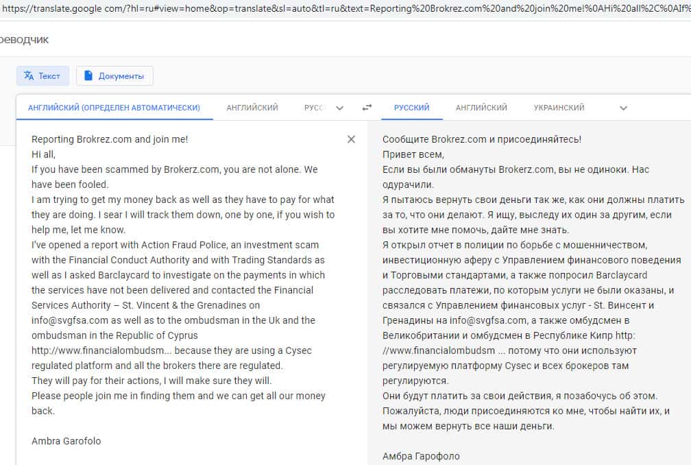 - Brokerz забрала деньги у наивной пользовательницы Ambra Garofolo