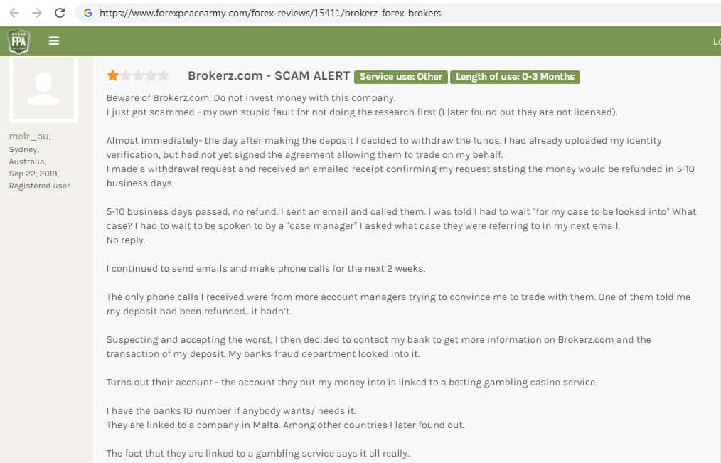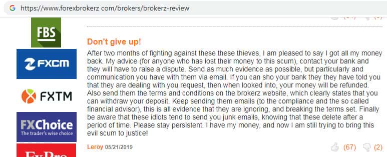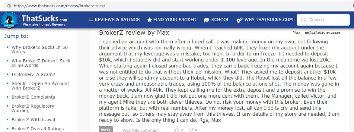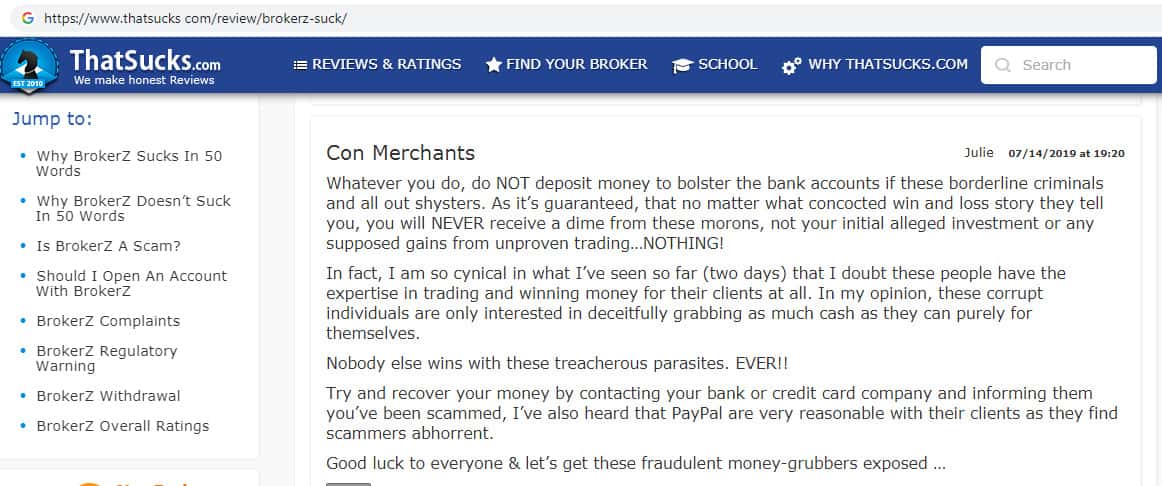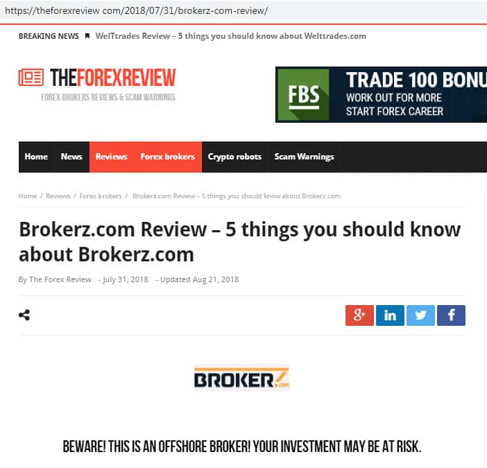 Предупреждение о жуликах из BrokerZ на портале theforexreview com