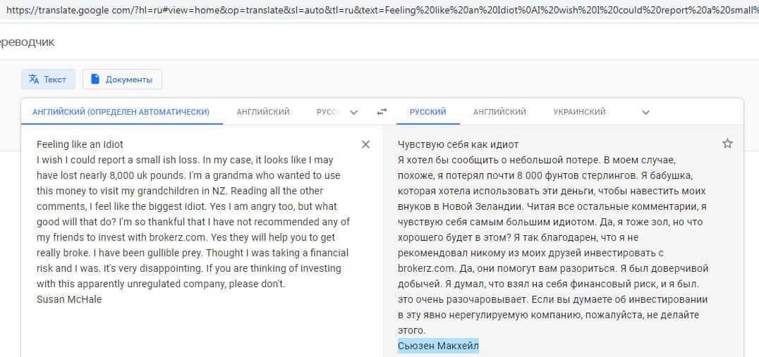 - Ещё одна жертва конторы BrokerZ с потерянными 8 тысячами фунтов стерлингов