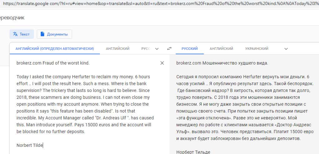 - Norbert Tilde написал отзыв о том, как потерял 15000 евро при работе с Брокерз