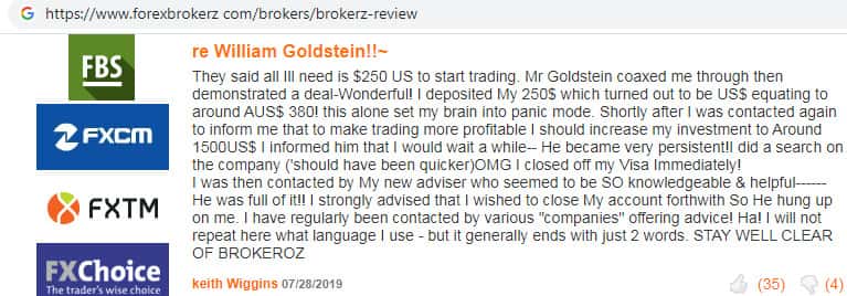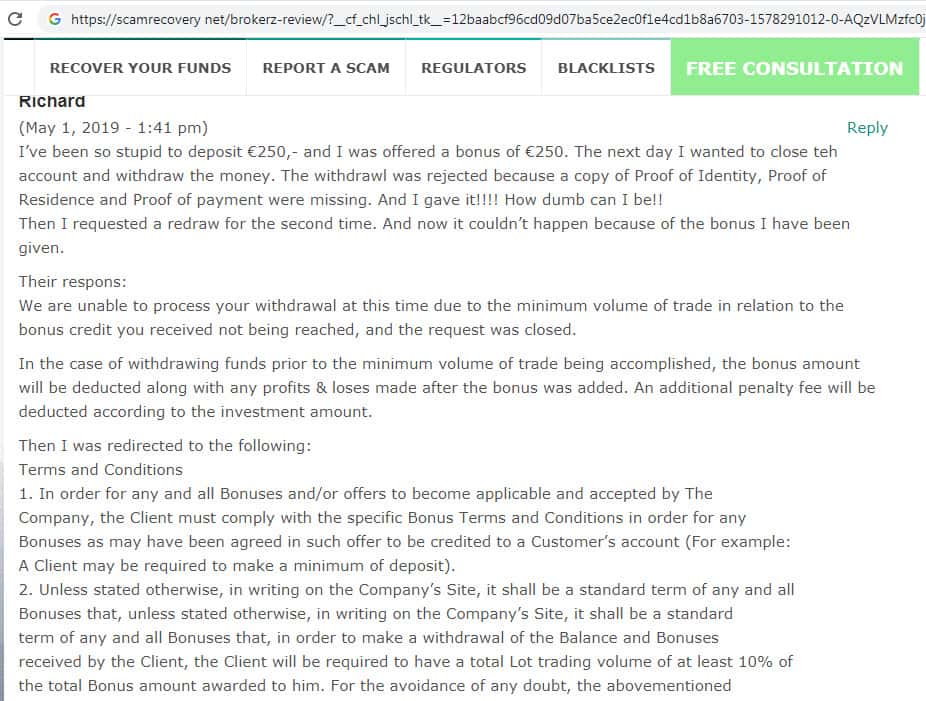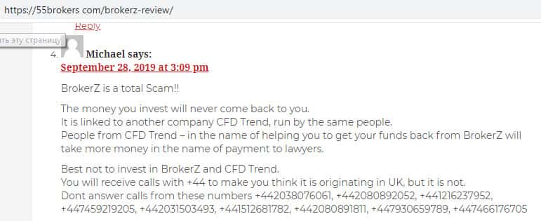 - Опасения Ричарда о возможном развитии отношений с BrokerZ в отзыве с портала scamrecovery net