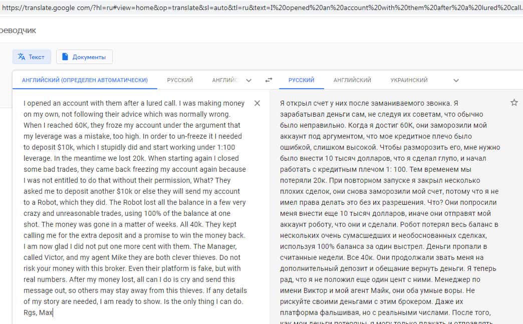 - Доказательства мошенничества BrokerZ в отзыве Макса, сумевшего заработать 60 000 и затем потерявшего всё
