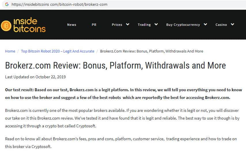 - "Отбеливание" репутации брокерской конторы Брокерз на портале insidebitcoins com