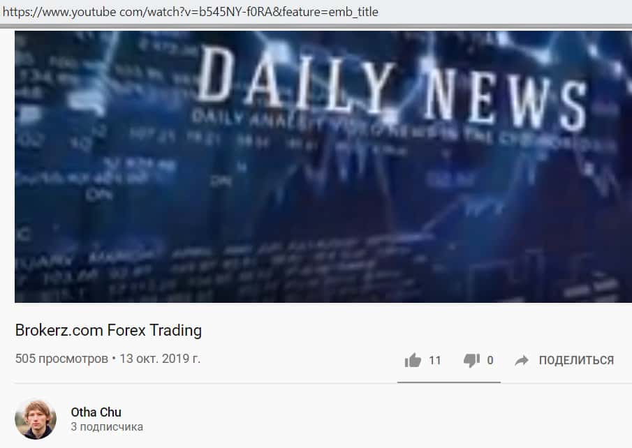Некий пропагандист Брокерской компании Брокерз, подписывающийся ником Otha Chu рекламирует торговлю бинарными опционами на данной торговой площадке Брокерз ком. Он разместил видеоролик с презентацией брокера на своем YouTube-канале. С 13 октября 2019 года его просмотрело 477 человек и трое из них подписались.