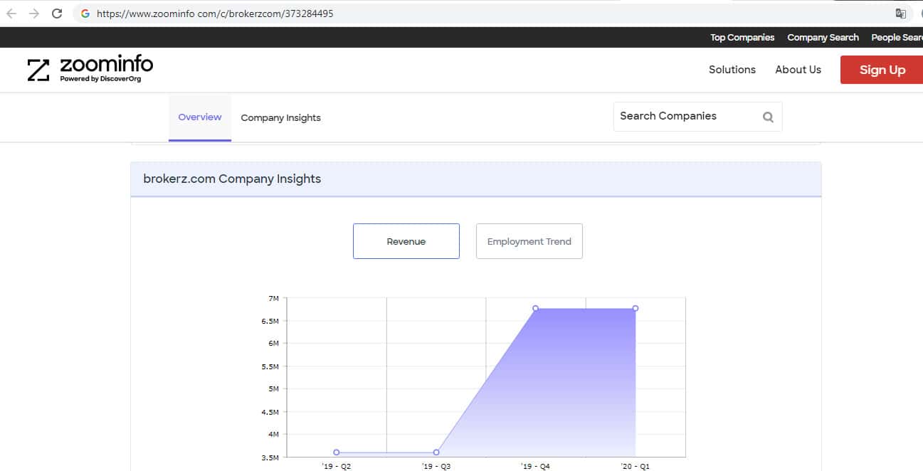 Анализ дохода портала Брокерз ком на сайте zoominfo com