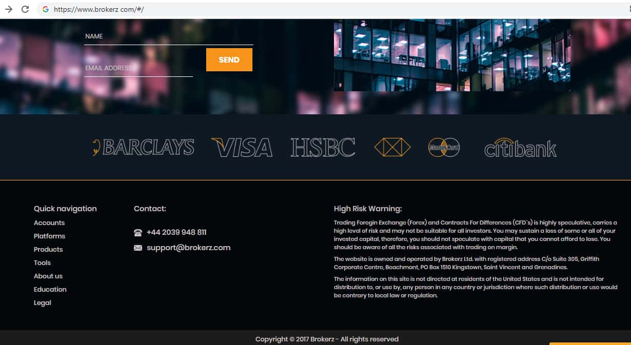 Обзор деятельности брокера Брокерз и условий трейдинга на его портале проведен автором статьи, размещенной на сайте обзоров форексброкеров theforexreview com. Автор искренне предупреждает о сомнительной репутации брокера, об отсутствии у него должного регулирования, а как следствие наличие большой вероятности скама!