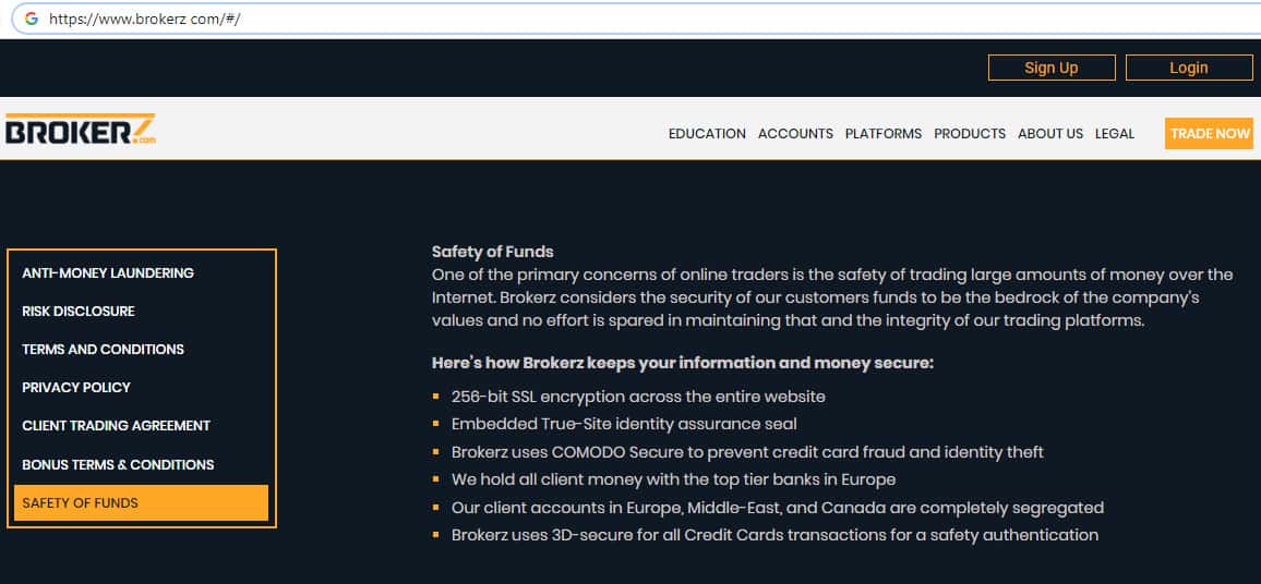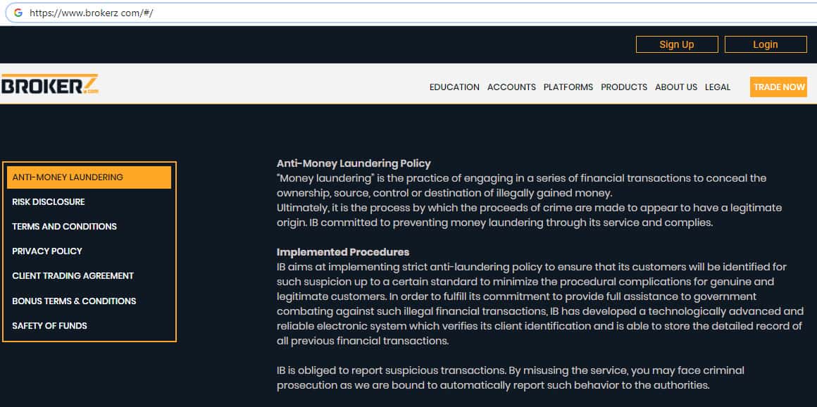 Говоря о пустой болтовне, приходят на ум разделы "Борьба с отмыванием денег" и "Безопасность денежных средств" портала Брокерз. Борьба с легализацией денежных средств, добытых преступным путем на площадке мошенников - это просто здорово! Здорово смешно! Так эта борьба состоит в том, что Брокерз не работает с наличными и не перечисляет денежные средства третьим лицам.