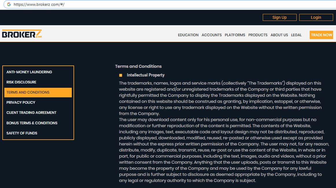 Условия использования торговой площадки и соглашения брокера BrokerZ с трейдером