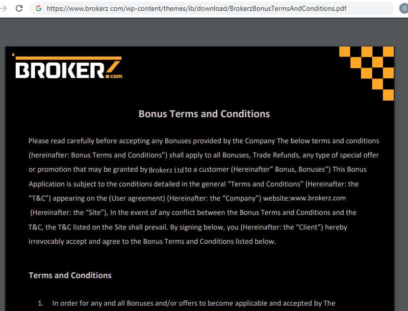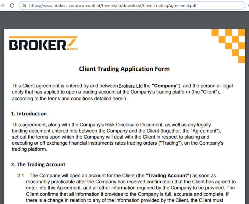 - Условия использования торговой площадки и соглашения брокера BrokerZ с трейдером