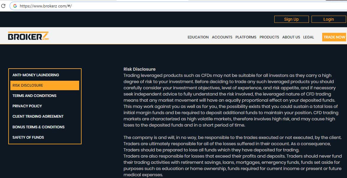 В "Ознакомлении с рисками", сопровождающими торговлю бинарными опционами, мошенники сообщают, что вся ответственность за открытие,закрытие сделок лежит исключительно на трейдерах, при любых убытках трейдеров на торговой площадке ответственность также трейдеров, компания Брокерз не может нести ответственность за происходящее на её площадке.