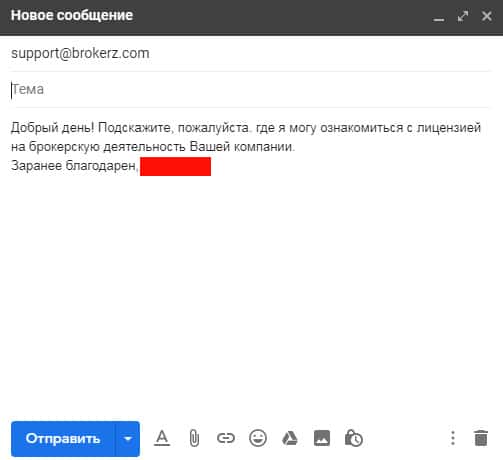 - Ещё одна попытка получения информации о лицензировании BrokerZ через электронную почту