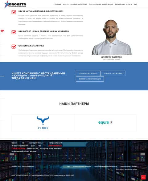 Что касается руководства и команды конторы Brokstr, то здесь из публичных данных, которые размещены на сайте, можно выделить некоего Дмитрия Эдермана, который является CEO&Founder Brokstr. Имеет ли он какое либо отношение к кухне Брокстр, пока неизвестно, но факт, что они используют данные этого человека на лицо. Пока не стоит его приписывать к мошенникам организации Brokstr.