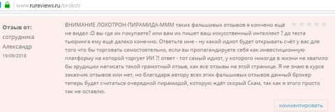 Один сотрудник лохотрона Брокстр рассказал все подробности, которые он знает об этой гнусной кухне. Шарлатаны используют фальшивые отзывы о себе и за деньги публикуют на различных порталах. Помимо этого весь проект имеет явные признаки кухни, хайпа и пирамиды МММ. Этот скам обворовал уже столько людей, что нам даже неизвестно, так как контора Brokstr занимается чисткой отзывов на интернет-ресурсах.