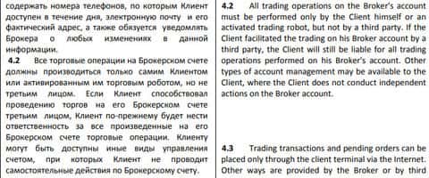 - Клиентское соглашение создано против клиентов ДЦ Брокстр