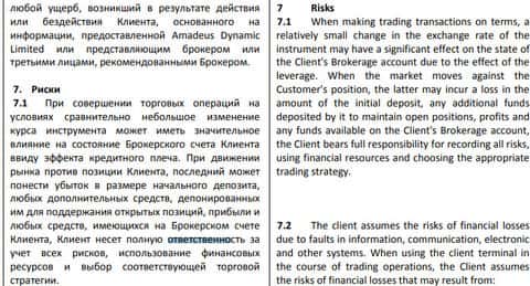 Если рассмотреть варианты с договором, которое жулики Брокстр требуют подписать при работе с ними, то сразу возникает множество вопросов о расхождении информации с гарантированным доходом и ответственностью. Вот в договоре, уже с первого раздела начинают писать, что клиент несет ответственность за все совершенные сделки на его счете. А как же торговля роботом? Это тоже сюда приписывается?