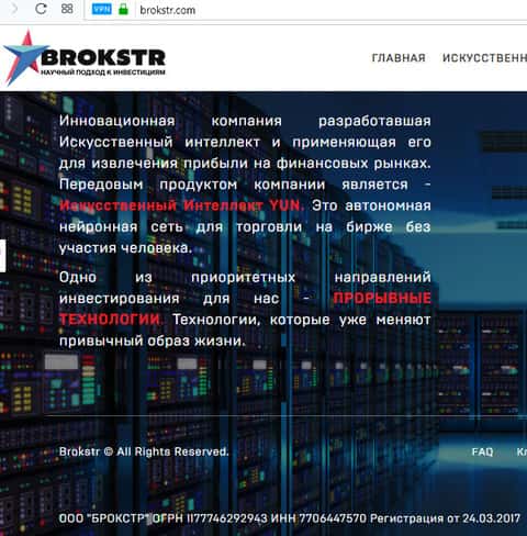 Брокстр - это инновационная мошенническая контора, которая завлекает людей на рынок Форекс, при этом использует один из редких способов инвестирования - вложение в исскуственный интелект. Но как бы там громко не звучало это обычный алгоритмический робот, а сама система заточена под долгосрочный МММ-проект с понятными для всех последствиями - зарабатывают только первые вкладчики, остальные потеряют огромные деньги.