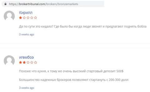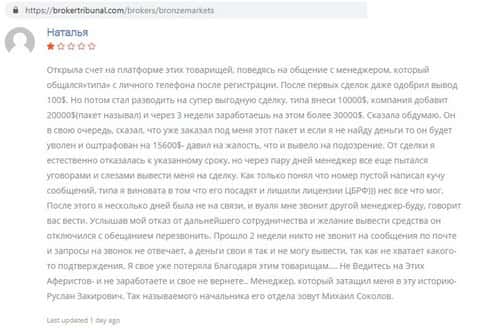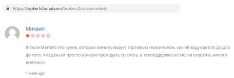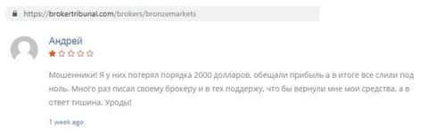 В конторе Bronze Markets кинули человека на 2500 долларов США