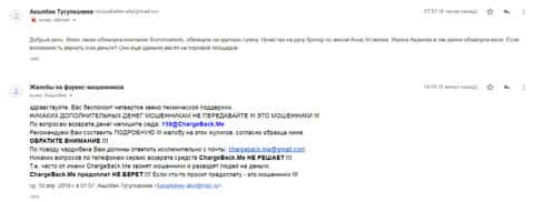 Еще одно письмо пришло от человека, которого кухни Бронз Маркетс слили под ноль. Жулики заблокировали счет клиента, так как просили совершить еще вложение к тем деньгам, которые уже были на счету. Теперь организации ChargeBack.Me придется помочь вернуть жертве целых 100 000 тенге. Имя разводящего лица кухни - Вадим, брокер из BronzeMarkets.