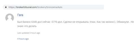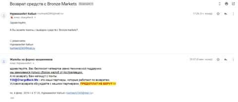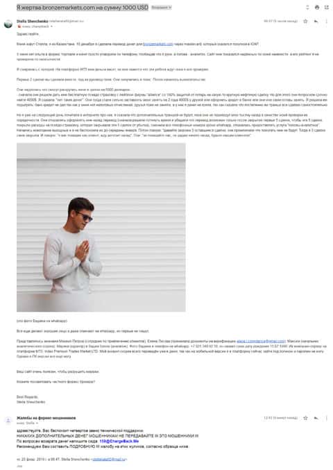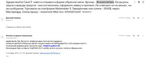 - Аферисты Бронзе Маркетс развели клиента из Казахстана на несколько сотен долларов