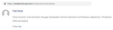 - Бронз Маркетс развел клиента на 2000 долларов
