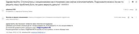 Если обманщики из Бронз Маркетс Вас ограбили, то в таком случае непременно напишите об этом случае нам. Сообщите е-майл в форме для обратной связи ниже, с Вами установят контакт.