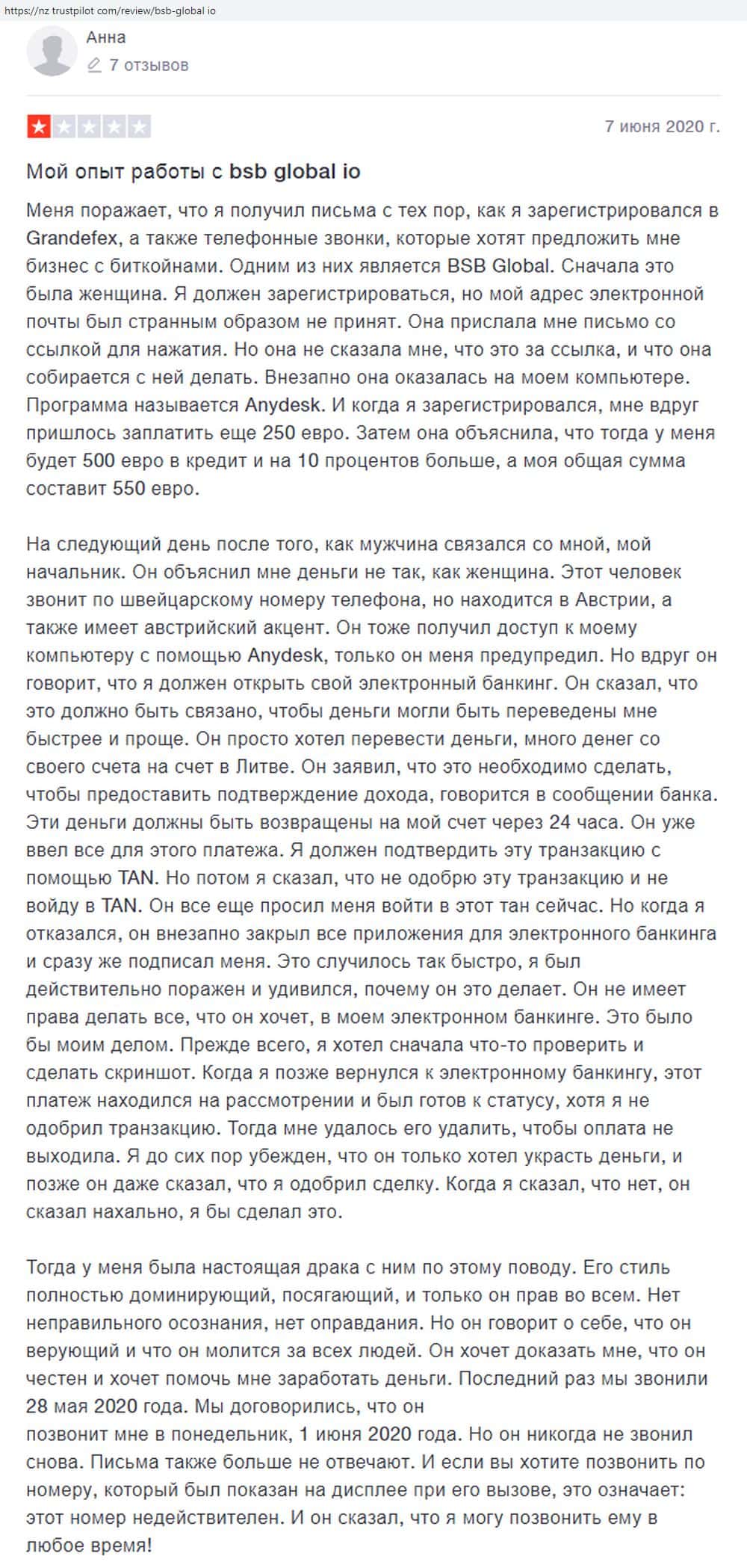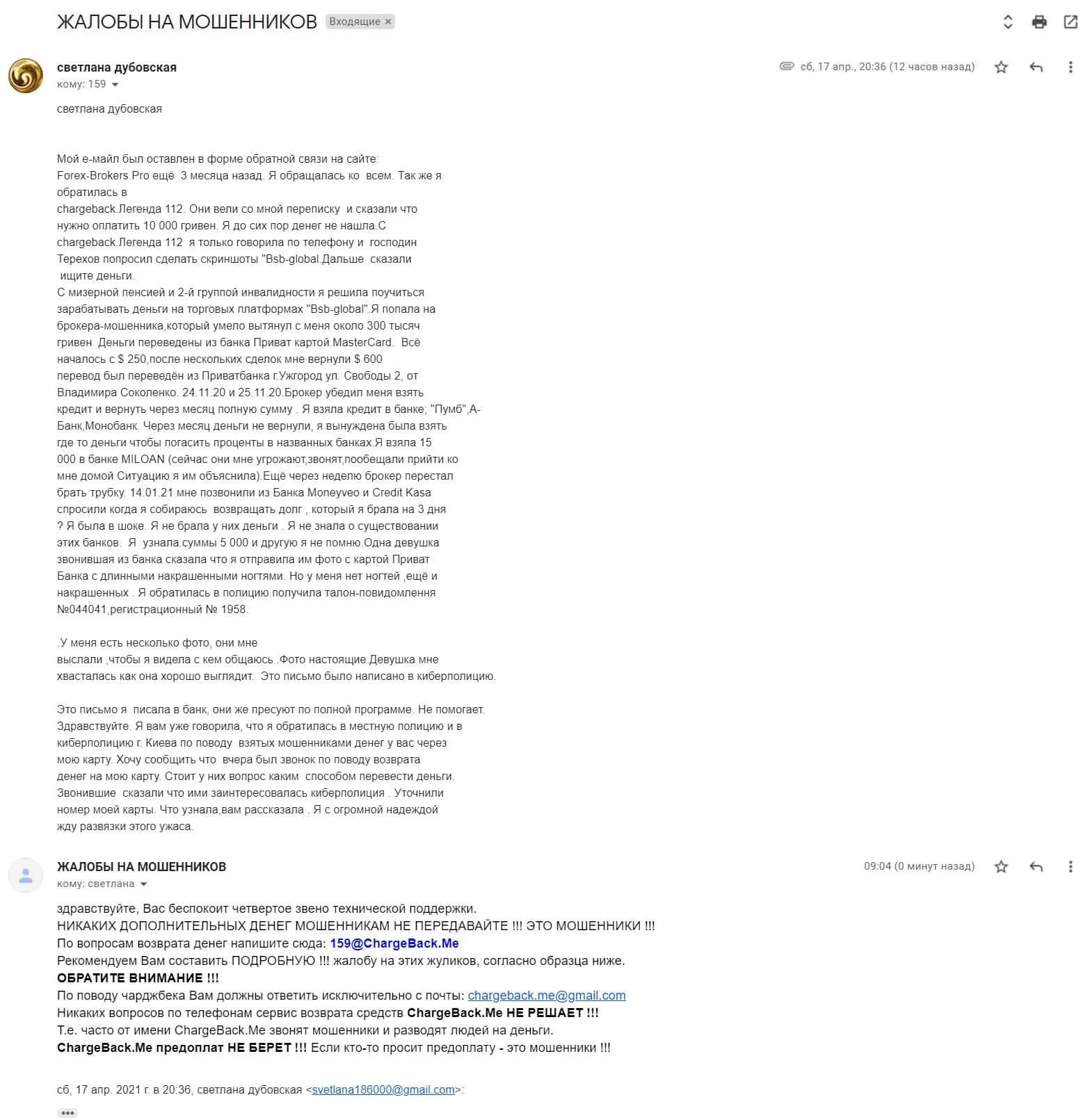 В данном разделе предлагаем ознакомиться с первоочередной и подробной жалобой об обманщиках БСБ Глобал, которые кинули клиентку на 10 200 $ США.