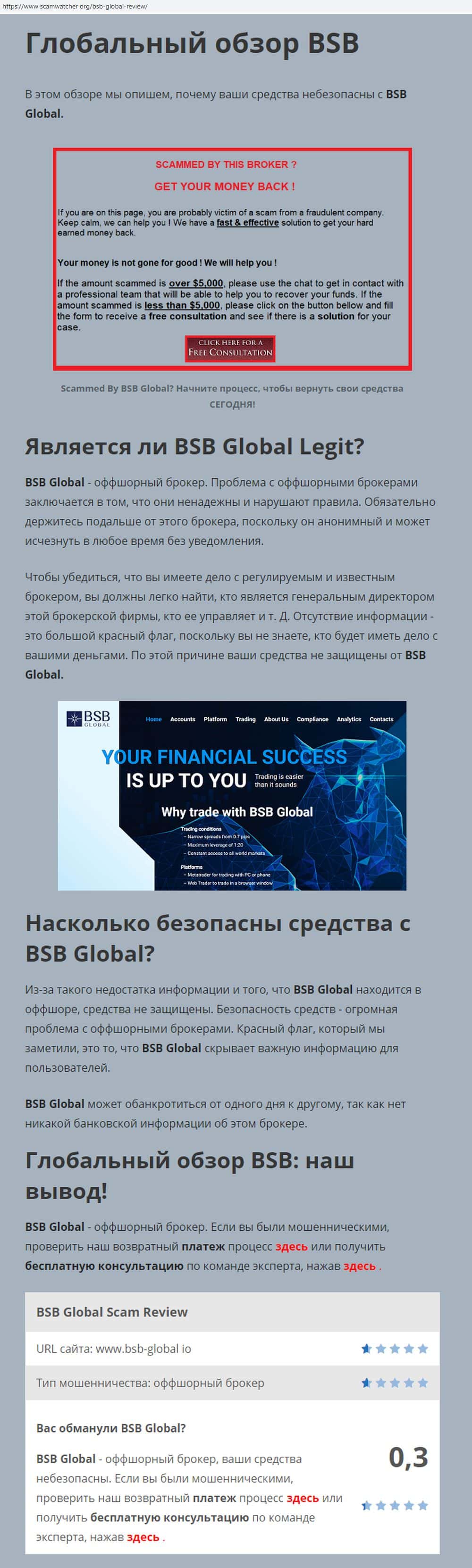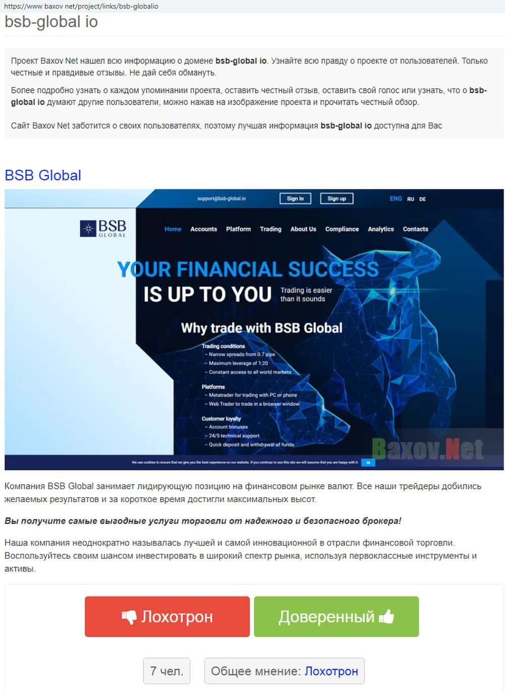 Информация о лохотроне БСБ Глобал в сети