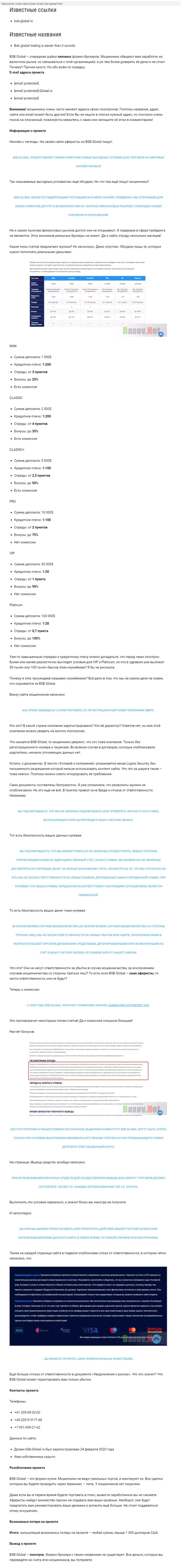 Брокеры-аферисты BSB-Global io контактных данных предоставляют мало, что является очевидным признаком лохотрона. Кроме номеров доступен один адрес электронной почты: