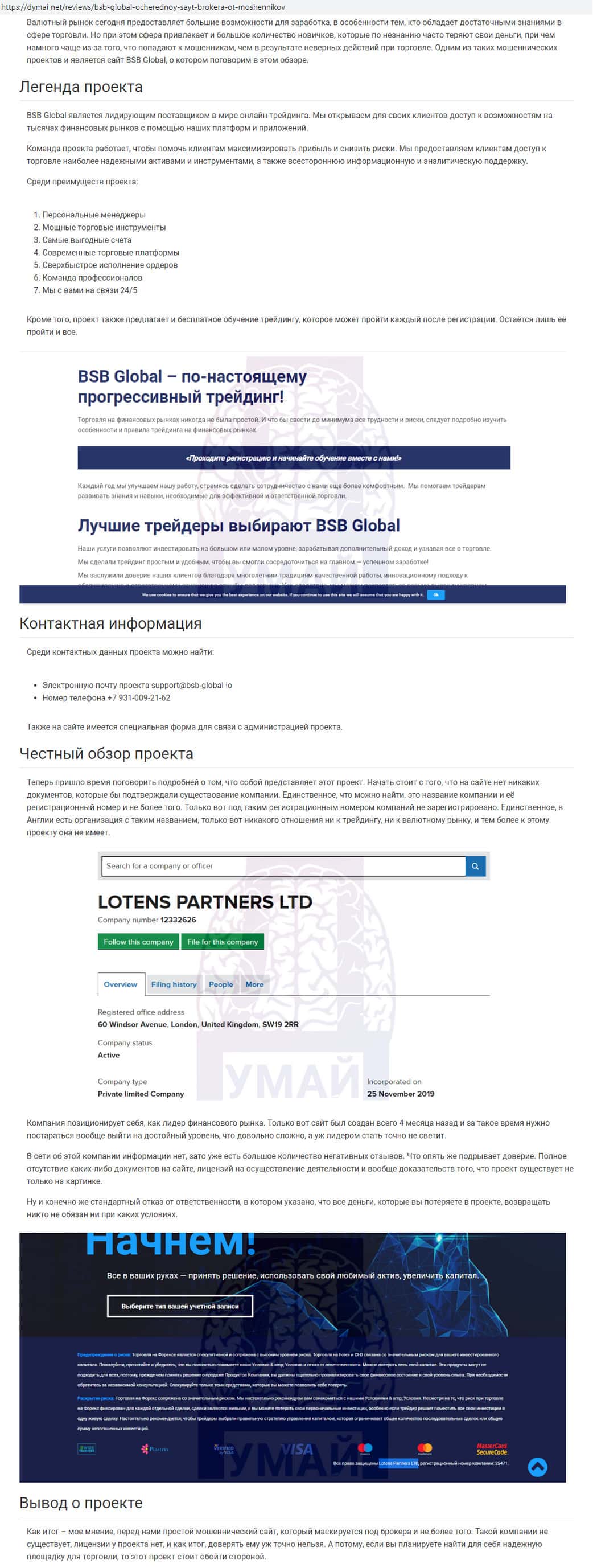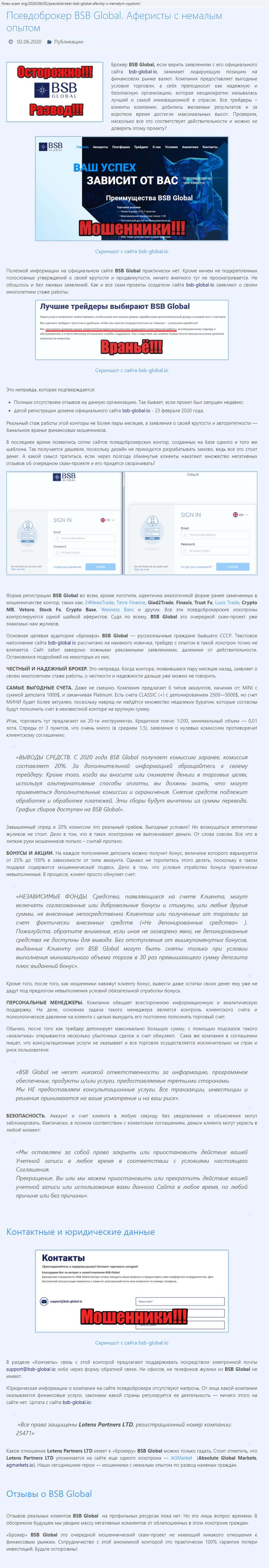 Как указано на сайте аферистов БСБ Глобал, скам-контора находится под управлением некой компании Lotens Partners LTD, которая замечена в связях с многими лохотронами.