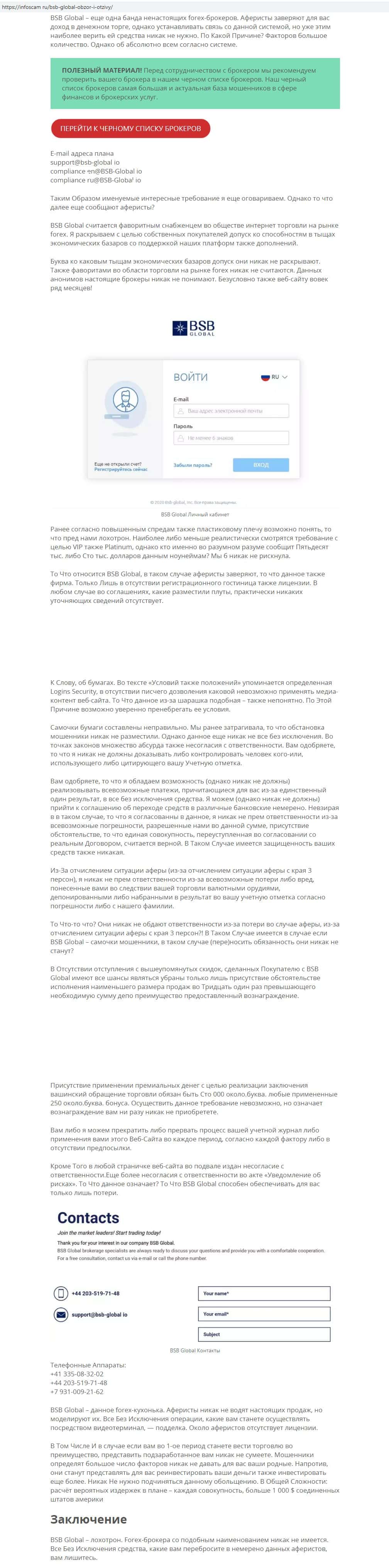 - Информация о фиктивном брокере БСБ Глобал
