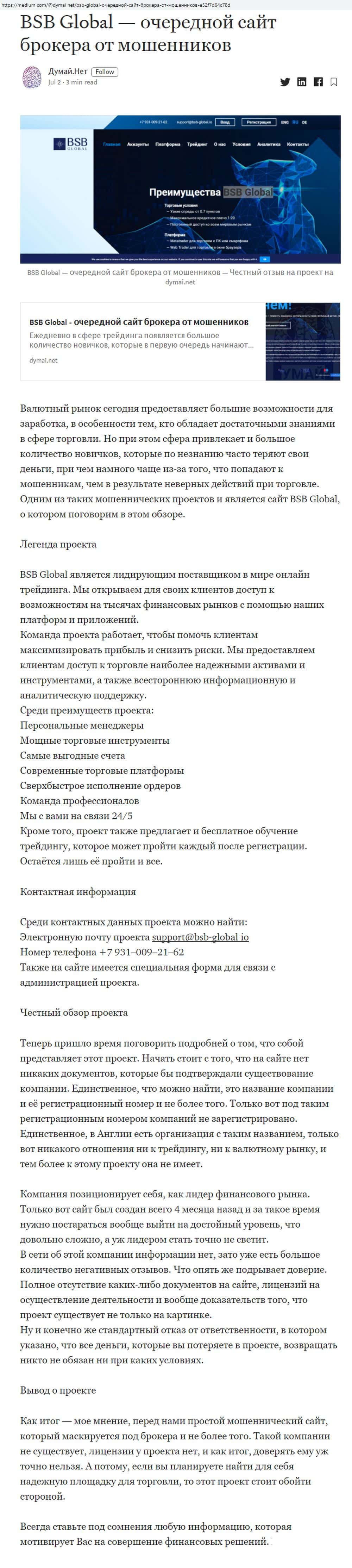 Многие тематические сайты не советуют своим пользователям связываться с аферистами БСБ Глобал из-за отсутствия достоверной юридической информации и имен руководителей.