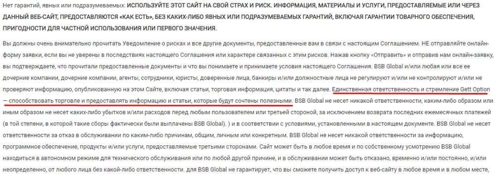 Естественно, в клиентском соглашении разводил БСБ Глобал есть стандартный пункт о том, что никаких гарантий сохранности средств у трейдера нет - еще одна защита от жалоб.