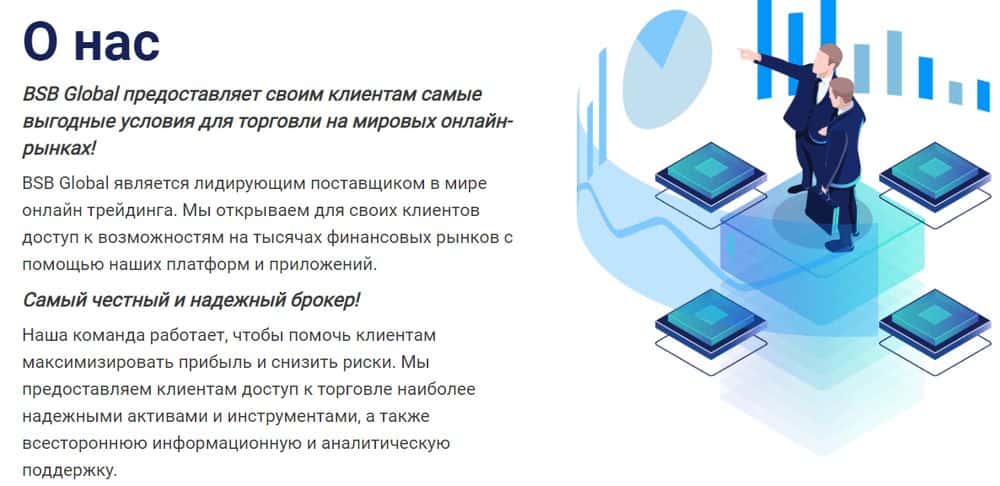 Опытные трейдеры сразу замечают, что фиктивная конторка БСБ Глобал не имеет никакого отношения к финансовым рынкам и создана только чтобы обворовывать доверчивых новичков.