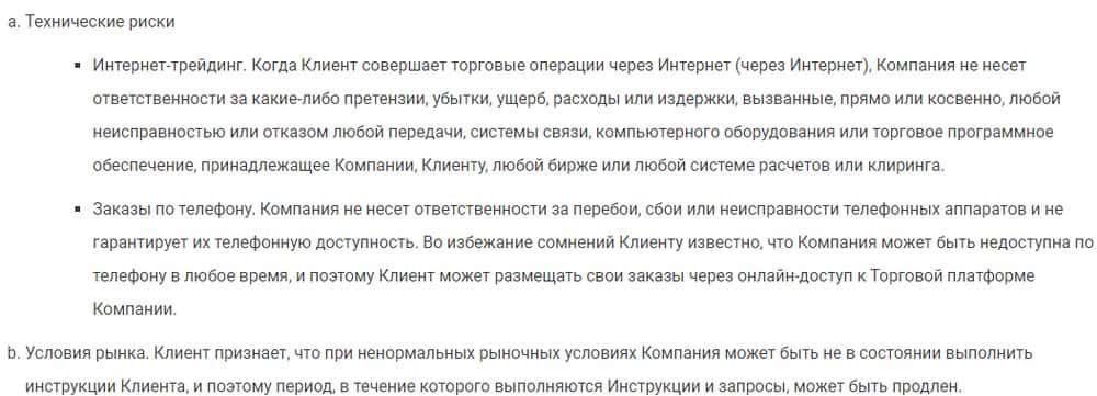 Кроме соглашения, на сайте есть и уведомления о рисках. Просто заполнив форму регистрации, трейдер подписывается под всеми документами и полностью лишается прав.