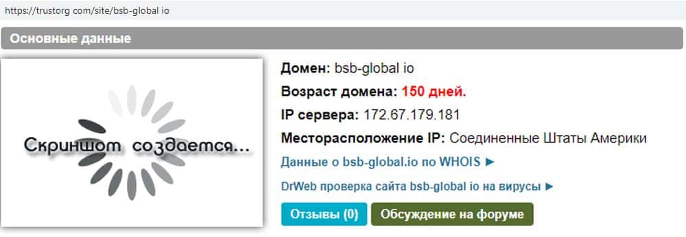 Если немного изменить запрос и добавить точку "BSB-Global.io", получим тот же результат. Создается впечатление, что мошенники БСБ Глобал намеренно скрываются от статистики.