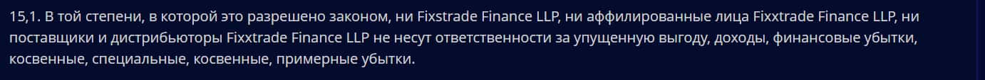 Очередные подставные правила в мошенническом договоре компании BTC-Capital Trade прописаны в пункте 15.1, где вся ответственность за убытки ложиться на плечи трейдера.