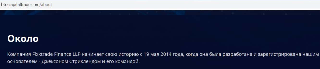 Fixxtrade Finance LLP владеет BTC-CapitalTrade Com