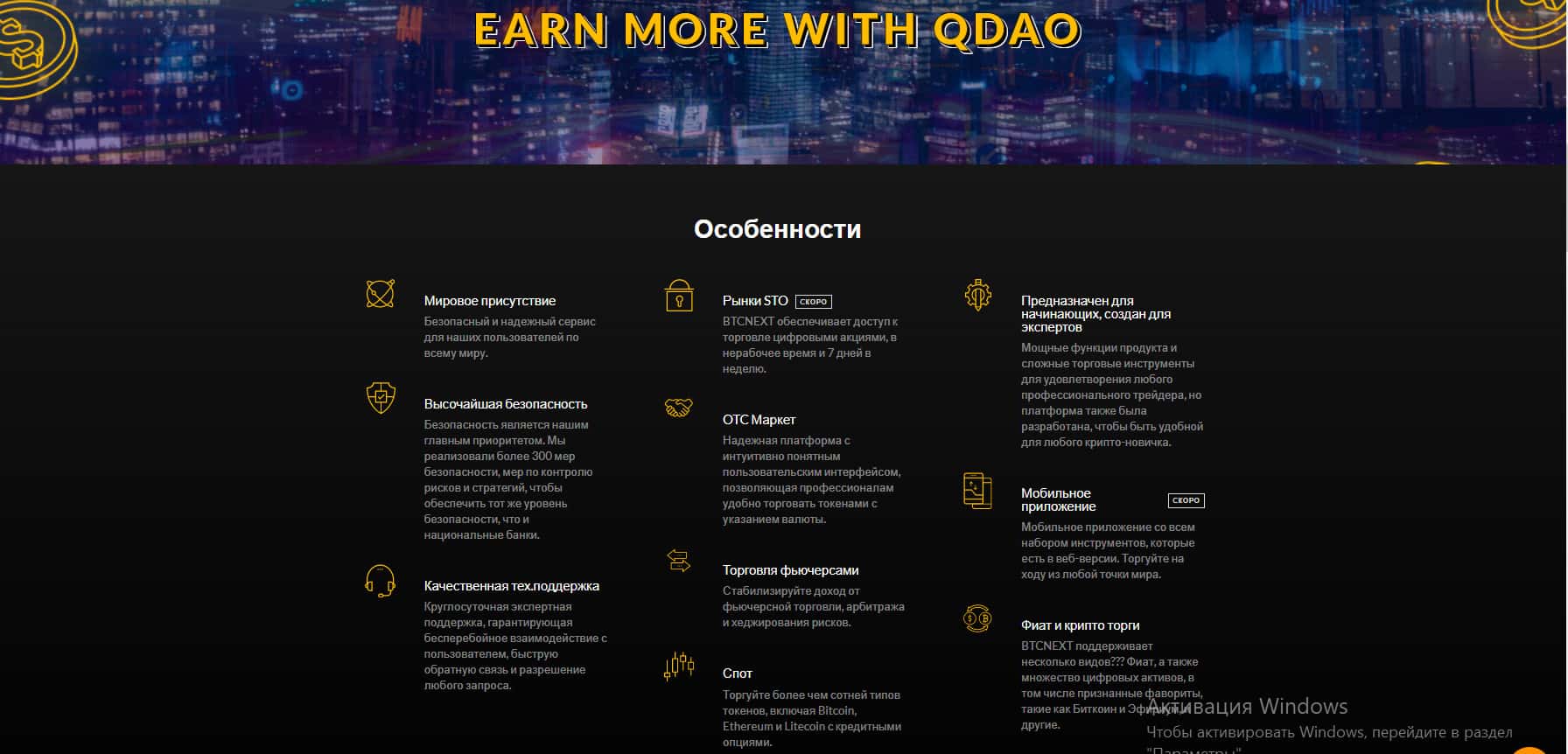 Привлекательный интерфейс БТЦ Некст, масса контента на разных языках - жулики поработали на славу