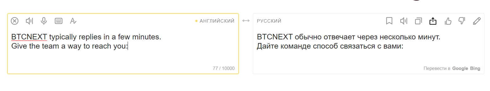 - На сайте BTCNext нет русскоязычного чата с техподдержкой
