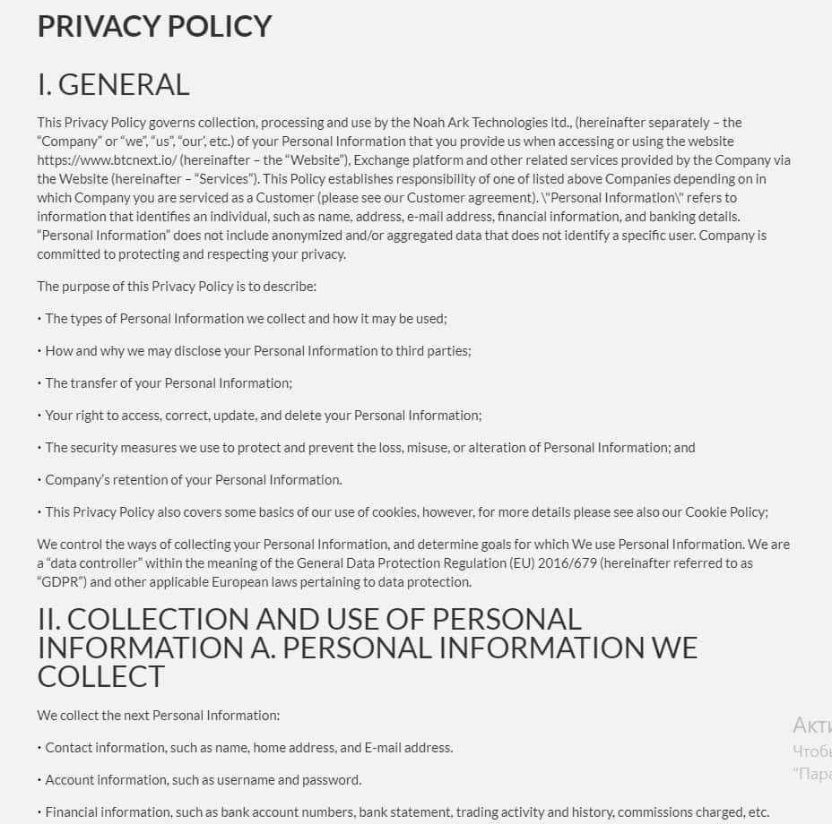 Что можно сказать о политике конфиденциальности БТЦ Некст?