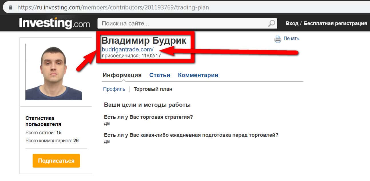 Далее предлагаем ознакомится с одним из тех, кто участвует в незаконной деятельности Будриган Трейд, предположительно, им является так называемый управляющий трейдер Владимир Будрик (название лохотрона схоже с его фамилией, к стати сказать), а по сути лицо, которое непосредственно заинтересовано во втягивание наивных граждан в форекс-лохотрон BudriganTrade (организация работает без лицензий ЦБ РФ и национального банка Республики Беларусь).
