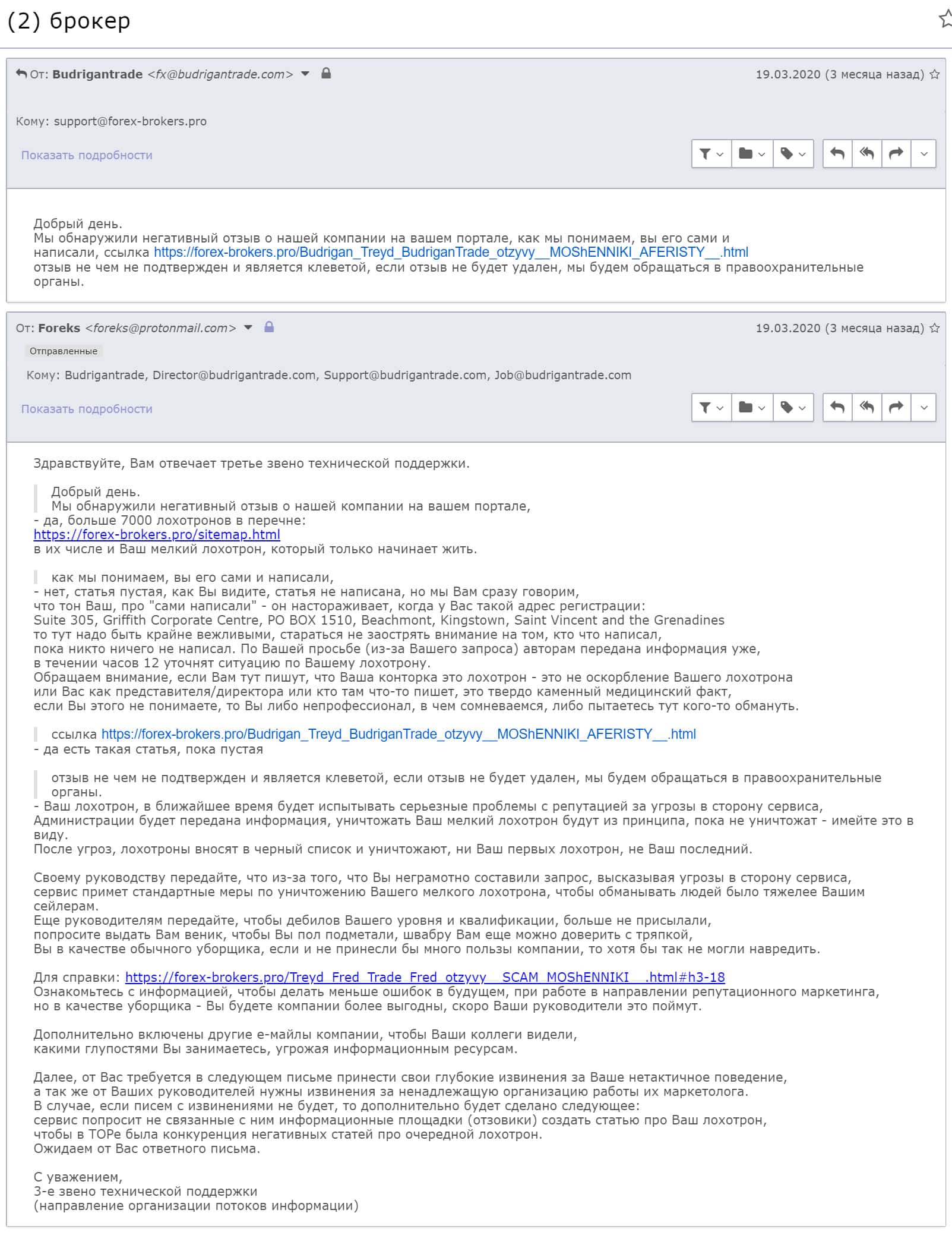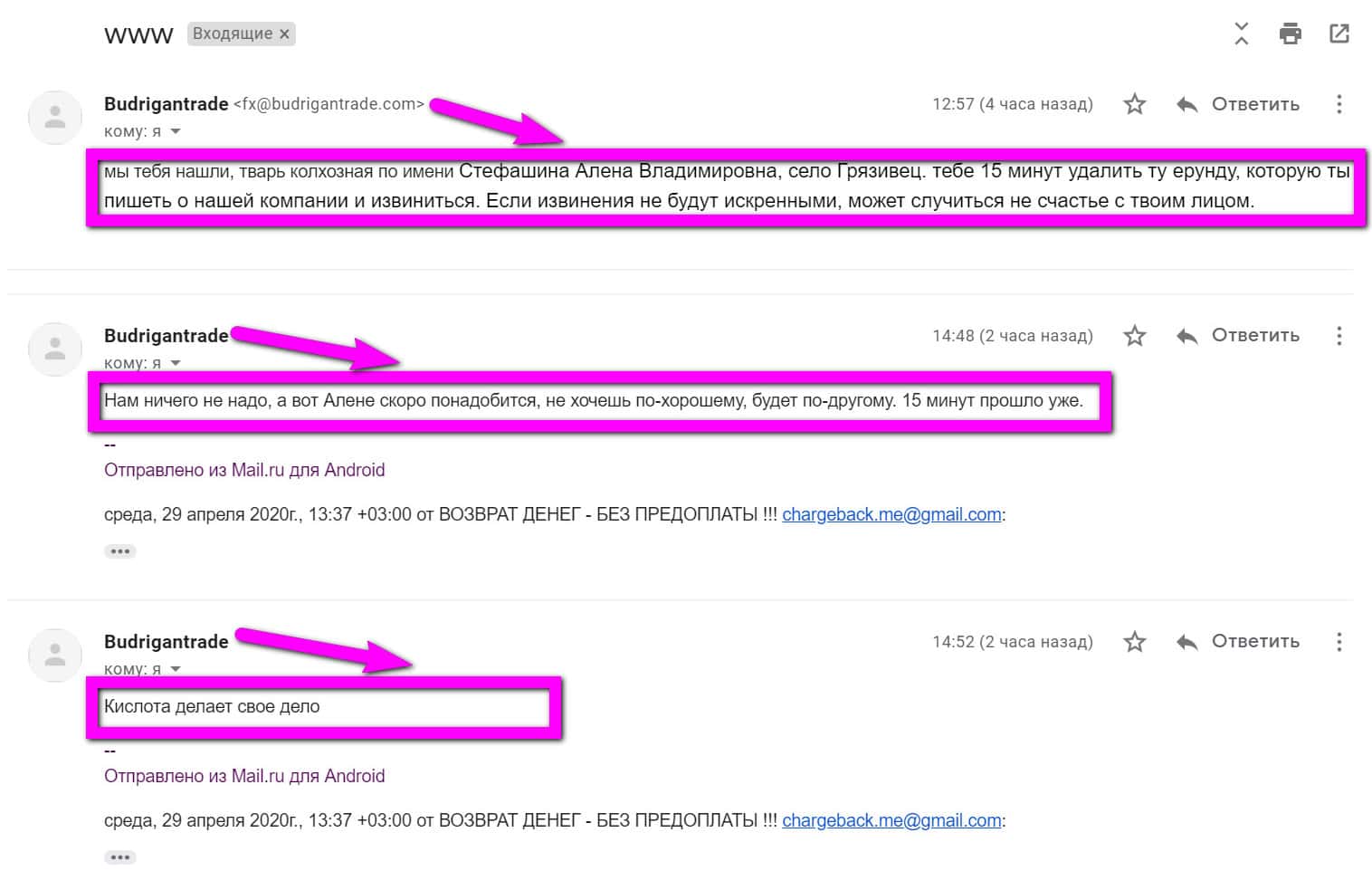 Мошенники BudriganTrade УГРОЖАЮТ РАСПРАВОЙ за данную статью
